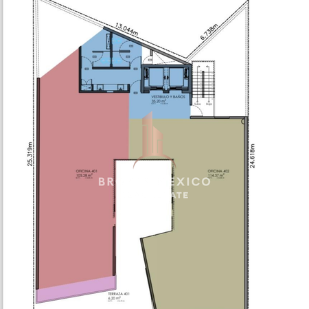 oficina 401. 105.28m2+6.2m2 terraza Renta $50,000.-+ mantenimiento. Venta $7,800,000MXN